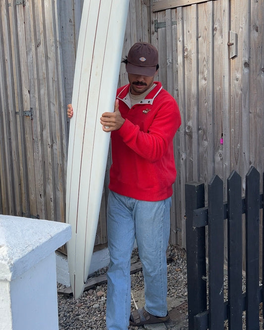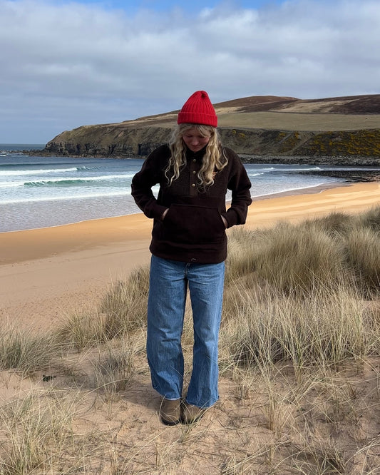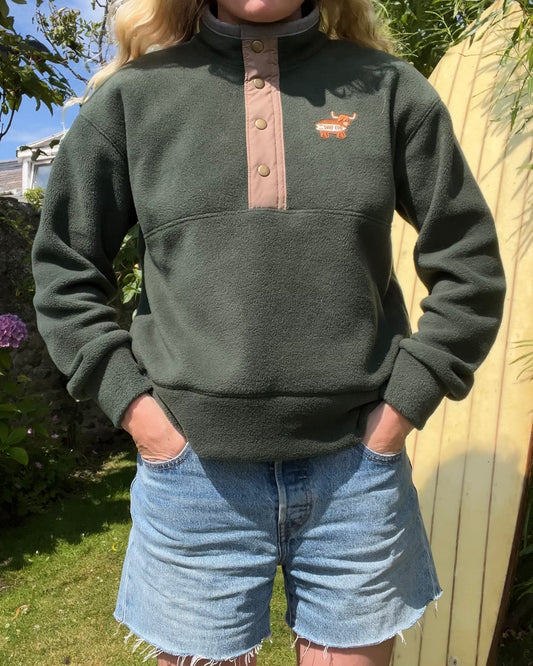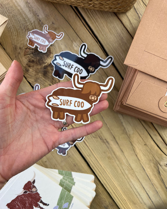 The name Surf Coo comes from the highland cows (coos in Scots) who live at my local surf spot where I grew up in the North of Scotland. My Mum opened her fleece pullover shop there in the '90s, and two decades later, I continued the tradition.