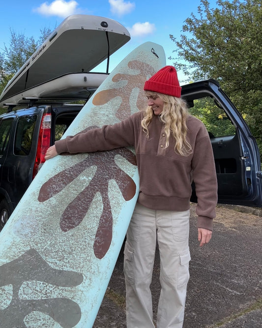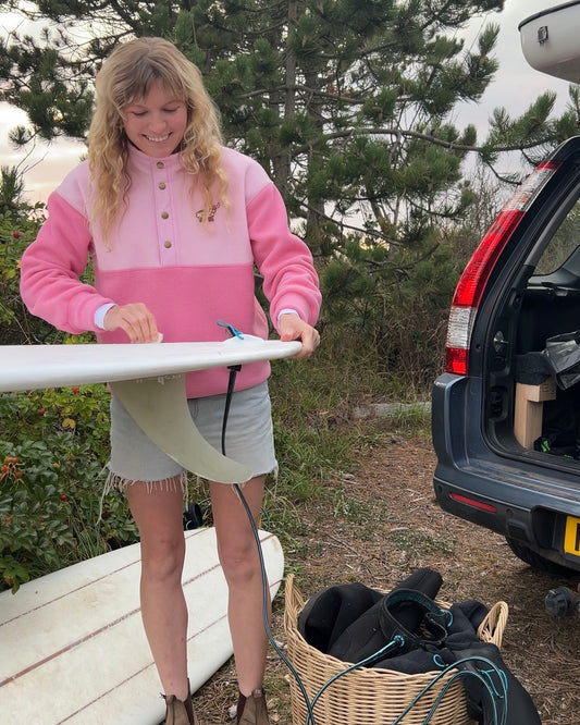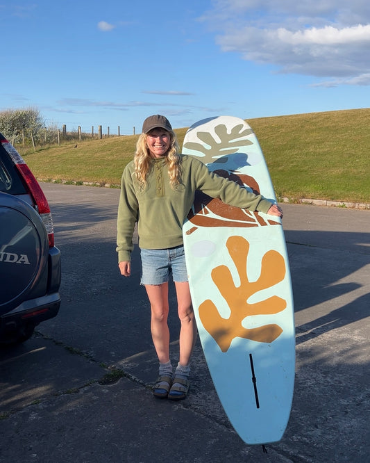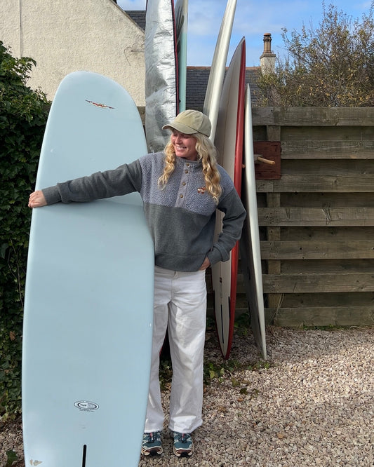 I grew up in fleeces, they’re my essential comfort after a chilly surf. It brings me so much joy sewing people fleeces to keep them cosy on their own adventures! Since starting Surf Coo, I’ve been excited to post fleeces all over the world and to a variety of climates, the coldest place probably being Svalbard and the hottest, Hawaii!
