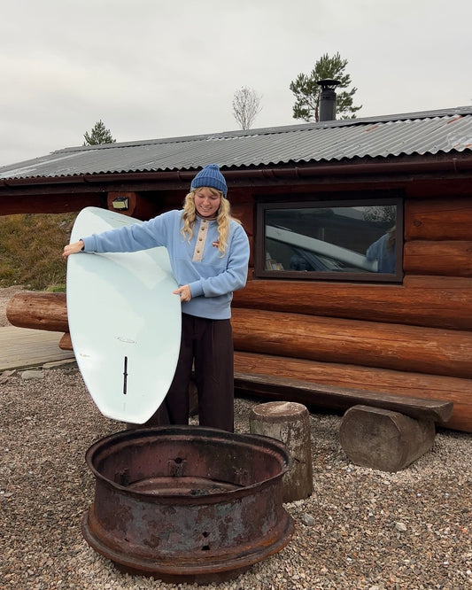 The name Surf Coo comes from the highland cows (coos in Scots) who live at my local surf spot where I grew up in the North of Scotland. My Mum opened her fleece pullover shop there in the '90s, and two decades later, I continued the tradition.