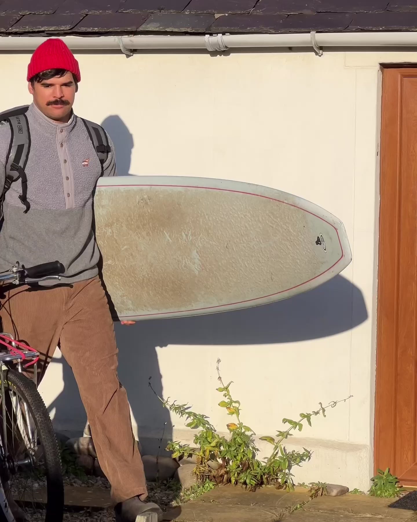 Popper fleece in grey with a sherpa upper body. Upper half is lined. Features an embroidered Surf Coo patch. In the photos I'm wearing women's S and Luis is wearing men's L.